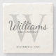 This coaster features personalised groomsman's name in grey classic script font style with wedding details in grey classic serif font style and monogram in light grey classic serif font style as background, on white background.