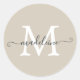 Personalised Script Name Monogram Warm Beige Classic Round Sticker