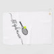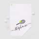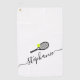Personalised clip on tennis towel with a simple cute tennis racket graphic and custom name or text in a feminine girly and modern pretty script font monogram. Any girls or womens tennis player would appreciate the elegant look on this modern and minimal useful tennis themed gift.