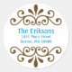 These address labels feature a brown scroll design and aqua blue text. Customise them with your address.