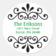 These address labels feature a black scroll design and green text. Customise them with your address.