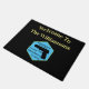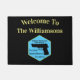 Personalised with your family's name, this is a fun but serious mat in support of the second amendment with an icon of a handgun silhouette and the text "24 hour protection provided by 2nd Amendment Security.