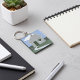 This custom keychain is a great gift for new homeowners. It highlights a charming home and heart design with typography that celebrates the joy of a new place. The centerpiece features creative typography with heartfelt phrases about home, set against a picturesque image of a house with a heart, a cheerful bird in the yard, and a bright blue sky. It also includes two customisable text fields, perfect for adding personal messages, names, or unique touches to make it even more special.