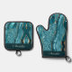 Personalised Sequin Teal Blue Agate Oven Mitt & Pot Holder Set