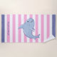 Personalised Shark White Pink Grey Striped Kids Beach Towel
