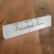 Personalised silver glitter desk nameplate with professional company title. Make your own with a custom name and formal job function like executive producer. Perfect for business boss and office employee. Corporate office supplies. Silvery background colour. Shiny glittery design with elegant typography. Also great for wedding seating.