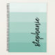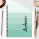 This trendy modern design features five colour block stripes in gradient tints from light to medium aqua. Personalise it with your name in vertical black signature handwriting script.