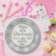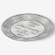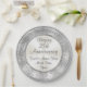 Personalised Silver 25th Anniversary Paper Plates (9 or 7 inch) with the Couple's NAMES and Wedding and or Anniversary DATE(S) or Your Text or Delete. Gorgeous silver coloured swirls on silver background and champagne centre with "Happy 25th Anniversary". Type you quantity in the top portion of the "Quantity Drop Down" Box or select one of the preselected amounts.