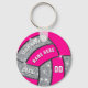 Super Cute Personalised Faux Silver Glitter, Pink and White Volleyball Keychains in ANY COLORS and 4 Text Box Templates. CALL Designer Linda: 239-949-9090 to CHANGE the faux silver glitter, pink and or white to YOUR volleyball party colours for Any Occasion. Memorable volleyball party favours for girls and coaches. Fun volleyball birthday party ideas or volleyball team gifts. You decide what text to type into the 4 text box templates.