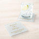 Create stylish wedding anniversary coaster by adding the couple's names and wedding or anniversary date to these glass coasters. Two hand drawn hearts give a chic romantic touch. Simple, elegant script saying "Celebrating 50 Years" written in a tan golden colour can be edited to any short text. Two simple hand drawn golden tan toned intertwined hearts accent the centre. Add the couples names in golden tan modern script. Customise the golden wedding anniversary date for a lovely wedding anniversary party table and keepsake gift. This would look great on the guest's party table with the matching napkins and stemless wine glasses. Simple minimalistic yet romantic table decor for a lovely golden 50th anniversary, wedding, or engagement party. Or a great gift for your parents anniversary.