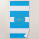 Personalised Sky Blue White Stripes Monogram Beach Towel