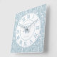 Personalised Slate Blue and White Floral Square Wall Clock