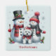 Personalised Snowman Couple with Westie Christmas ornament with one line personalisation on front and two lines of personalisation on back.