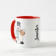 Add a touch of Whimsy and Fun to your Mornings with this Adorable Snowman Mug! This Charming Christmas Mug features a Snowman who is too Cute! He is holding a Mug that is full to the brim with Marshmallows and a Candy Cane. His Mug has a Snowman on the front in a Winter Scene. This Cute Snowman is also holding a Chocolate Chip Cookie. You can easily Personalise this Snowman Mug by adding Your Own Name! Personalise this Cute Snowman Mug to your Hearts content!