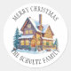 Personalised Snowy Log Cabin Christmas Classic Round Sticker