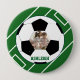 A fun soccer ball design fully customisable with your own name or text and photograph, featuring a soccer ball on a green soccer pitch. Personalise the custom text is in a coordinating green. Ideal gift for the soccer player in your life.