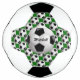 A football soccer ball design which is fully customisable with your own name or text. The background features a pattern of soccer balls on a football pitch green. Ideal for any soccer player, football coach or soccer fan.