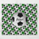 A football soccer ball design which is fully customisable with your own name or text. The background features a pattern of soccer balls on a football pitch green. Ideal for any soccer player, football coach or soccer fan.
