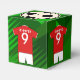 A great gift for any budding soccer football star, sports fan or keen soccer supporter featuring a red and white soccer jersey with your name and number with a football and green modern football pitch background.