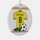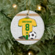 Personalised soccer jersey yellow green ceramic tree decoration