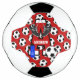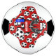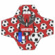 Treat the future soccer star in your life to one of these personalised monogram soccer ball momento. Featuring the Letter A with a template for the name to be added . Hanging from the letter A is a pair of soccer cleats, with a initialled water bottle and soccer ball either side. Background feature matching red as in the Initial and black and white soccer balls.