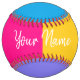 Customise a softball with your own name or text! Just follow the prompts under personalise, for the front and back text boxes. Designed for your convenience by HAMbyWhiteGlove. Play Ball! Pink, Purple, Yellow and Blue ball with red writing to match the stitching.