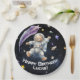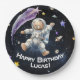 Make your space-themed celebration extra special with these personalised paper plates featuring an adorable teddy bear astronaut floating among stars and planets. Perfect for birthdays or cosmic events, each plate can be customised with a name or message, adding a unique touch to your party decor. Delight your little astronaut and guests with this charming design that brings the magic of space exploration right to the table!