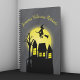 Celebrate spooky season with this personalised Halloween notebook featuring a witch flying across a glowing full moon above a haunted house silhouette. The eerie nighttime scene includes crooked houses, glowing windows, and a bare tree set against a mysterious grey night sky for a fun Halloween-inspired design.