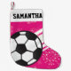 Personalised Sporty Stripes Soccer Ball Pink Small Christmas Stocking