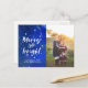 Modern Personalised Merry and bright starry night sky Christmas photo card postcard featuring beautiful a galaxy of stars and lovely handwritten typography. Personalise with your very own message.