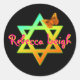 This round personalised Bat Mitzvah sticker has a neon green, orange, pink, yellow and blue Star of David and a bright orange and yellow butterfly on it that matches the Bat Mitzvah invitation shown below. The text is customisable. If you require any other matching items, please email niteowlstudio@gmail.com with your request.