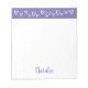 Personalised stationery for girls with hand-drawn hearts and brush script font. In purple and white.