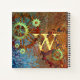 Rusty Steampunk Cogwheels and gears against a vibrant verdigris rusty blue background. Personalise it with your initial or give as a gift.