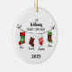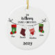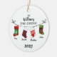Adorable stockings ornament with the options of adding family name, personal names, year, and picture on the back.
