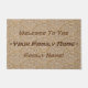 Design on this indoor-outdoor doormat creates illusion of hand-cut stone tiles in shades of sand, brown & almond, arranged in a classic fan-shaped (or clamshell) pattern often seen in driveways & walkways of luxury mansions. 3 custom text fields ready for you to personalise that default to: "Welcome to the", "(Your Family Name)" & "Family Home!"