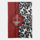 This design features a burgundy diagonal striped pattern on top and a black and white leopard print on the bottom. In the centre, there is a circle monogram logo which can be personalised with the recipient's initial and first name.