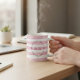 Introducing our watercolor pink striped coffee mug, designed to bring a touch of modern elegance to your morning routine. Personalise it with a beautiful monogram featuring your initials, showcased above and below your name templates. This delicate pink mug is the perfect gift for loved ones or a stylish addition to your own collection. Crafted with care, this personalised coffee mug combines functionality with charm. Start your day with a warm cup of happiness as you sip from this unique creation. Whether you're enjoying a quiet moment alone or sharing a laugh with friends, our monogrammed coffee mug will add a special touch to every sip. Elevate your coffee experience today!