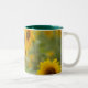 Personalised coffee cup or mug featuring pretty yellow sunflowers.