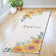 This floral yoga mat is decorated with watercolor sunflowers, eucalyptus, and greenery.