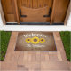 This rustic-chic doormat showcases three sunflowers arranged in a row against a background that looks like burlap. The word "welcome" is presented in a stylish white curved text design. Personalise it now with your family name and the year it was established. Alma Wad's design is truly unique. Perfect for homes with country-style decor.