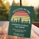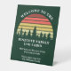 Cool custom sunset lake house welcome pedestal sign in beautiful forest green. Cool personalised touch for your log cabin vacation rental. Customise with your WiFi network and password under the trees along with any other information for guests.