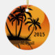 Personalised Sunset Tropical Beach and Palm Trees Christmas Ornament.