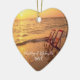 A beach scene with the sun setting while the ocean waves crashing up with 2 empty chairs in the water. Personalise by adding your names and a year.