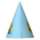 Party Hat with an illustration of a cute super hero bee with a cape in action pose, with custom text template for your name or message, illustration by MaxiHarmony / Radka Kavalcova