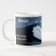 This surfing theme coffee cup is available personalised with the name of your favourite surfer.