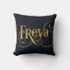 Personalised Swirly Script Freya Gold on Deep Blue Cushion