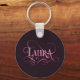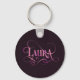 Personalised Swirly Script Laura Pink on Purple Key Ring