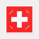 Simple Swiss flag motif for August 1 Swiss National Day parties, fondue dinners, etc. Classic white cross against a red field. Add your own custom text in the four areas around the flag.