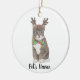 Personalised Tabby Cat (Grey) Antlers & Bow Tie Ceramic Tree Decoration