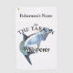 The golf towel exceeded my expectations! My husband actually approved of it! He liked the picture quality, thickness and overall usefulness of the golf towel I ordered to commemorate his lowest ever golf score. He liked it so well that I ordered 8 more towels with photos of his home golf course. Each one of the eight has the name of one of his golf group members. I will give them as party favors at my husband's 70th birthday party later this year. The different names were easy to add because the Zazzle template is so very easy to use. The colors were bright and authentic in all 9 of the towels that I made. The one of the 9 that I ordered has come out of the wash and line dry looking great.
